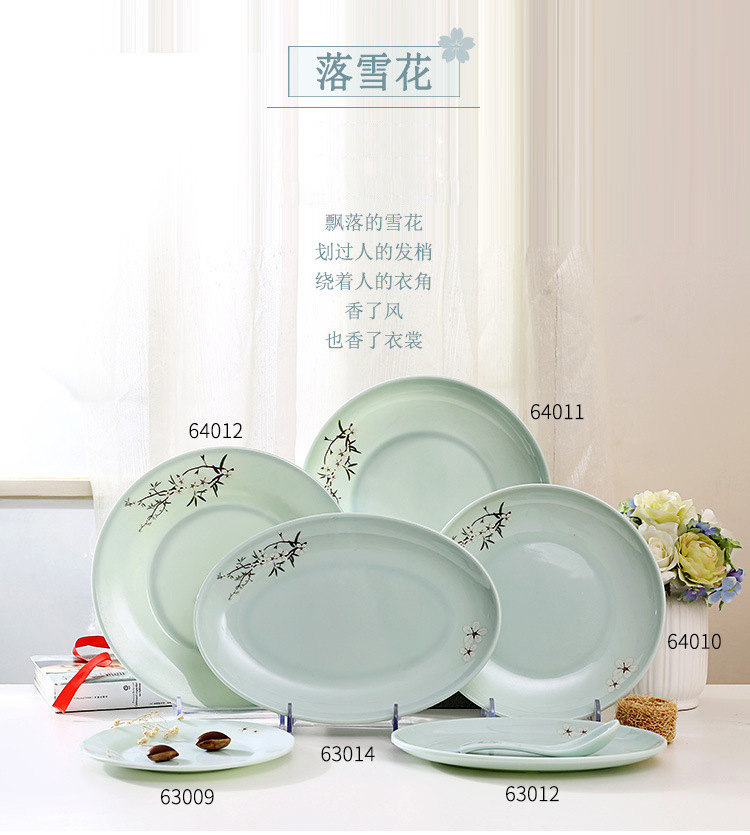 Warm and moist like jade falling snow tableware series, simple and elegant falling snow patterns, gentle and simple jade color, show the calm and elegant tableware